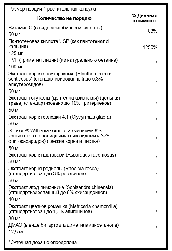 Swanson Adrenal Essentials не положит конец вашему стрессу, но может помочь вам справиться с этим, предоставляя специализированное питание, в котором нуждается ваш напряженный организм. Надпочечники находятся на переднем крае защиты от стресса и усталости, отвечая за контроль гормонов стресса, таких как кортизол и адреналин. Если ваша реакция на стресс нуждается в усилении, попробуйте Adrenal Essentials и продолжайте настойчиво, независимо от того, что жизнь преподносит вам.