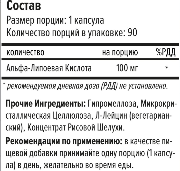 Альфа-липоевая кислота (ALA), или витамин N — это антиоксидант природного происхождения. Эта кислота участвует в процессе энергообмена клеток, отвечает за их здоровье, выводит свободные радикалы и тяжелые металлы из организма. Альфа-липоевая кислота помогает защитить клеточные мембраны и предотвратить их повреждение. Альфа-липоевая кислота необходима не только для защиты клеток, она также ускоряет метаболизм, способствует расщеплению жиров, нормализации углеводного обмена. Поэтому ALA подходит желающим снизить избыточную массу тела. ALA также снижает аппетит, увеличивая энергообмен и повышая количество сжигаемых калорий. Отдельно следует отметить пользу альфа-липоевой кислоты для здоровья печени. Кислота препятствует накоплению жиров и облегчает работу печени по выводу холестерина, токсинов и тяжелых металлов. Способность ALA ускорять расщепление углеводов поддерживает здоровое функционирование поджелудочной железы. Также благодаря антиоксидантным свойствам альфа-липоевая кислота препятствует разрушению белко