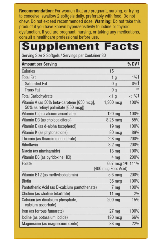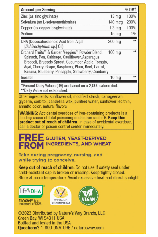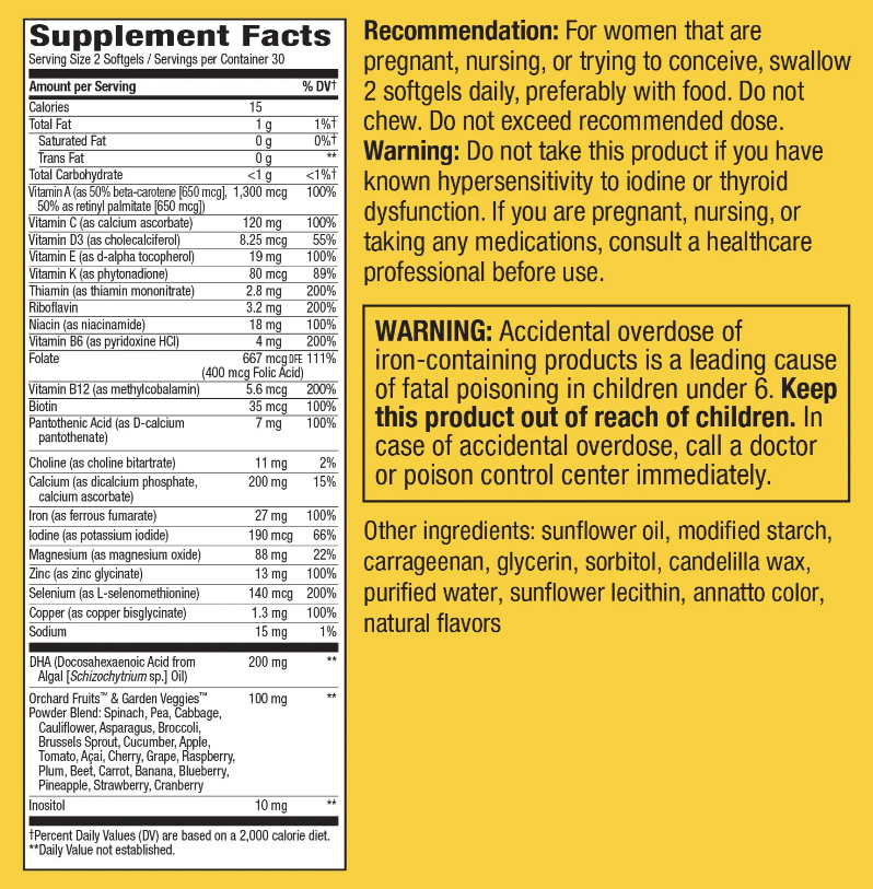 Ваше тело претерпевает множество изменений, когда вы беременны, кормите грудью или пытаетесь зачать ребенка. Где бы вы ни находились на пути к материнству, поддержите себя и своего развивающегося ребенка с помощью Alive! Пренатальные капсулы премиум-класса. Этот полноценный веганский поливитамин разработан для вас и вашего нового гостя и содержит 100% дневную норму 15 витаминов и минералов, а также высокоэффективную фолиевую кислоту, железо и ДГК растительного происхождения для поддержки здорового развития глаз и мозга.* Мы также добавили нашу уникальную еду - порошковая смесь Orchard Fruits™ и Garden Veggies™.