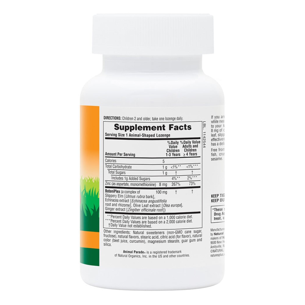 NaturesPlus Kid Zinc Animal Parade – жевательные витамины с добавлением цинка, специально разработанные для детей. Эти вкусные жевательные пастилки с приятным вкусом фруктов поддерживают иммунную систему, способствуют нормальному росту и развитию, а также помогают поддерживать здоровье кожи, волос и ногтей. Яркие упаковки с изображениями животных и натуральный состав делают их привлекательными для детей.
