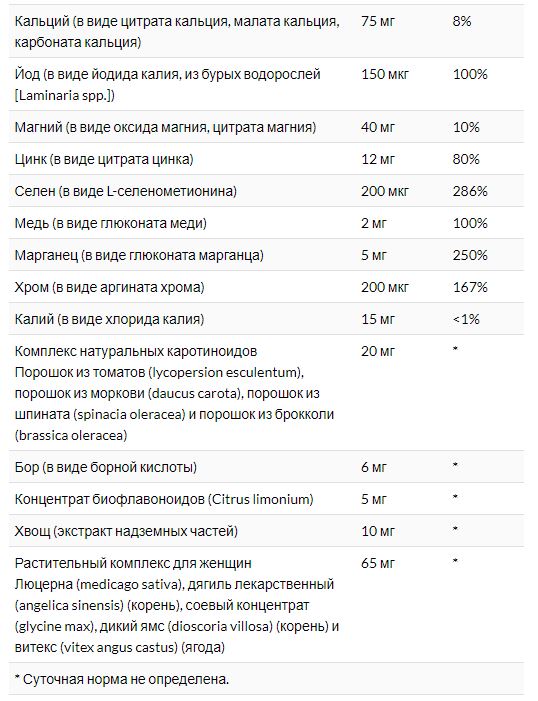 Люцерна (medicago sativa), дягиль лекарственный (angelica sinensis) (корень), соевый концентрат (glycine max), дикий ямс (dioscoria villosa) (корень) и витекс (vitex angus castus) (ягода)