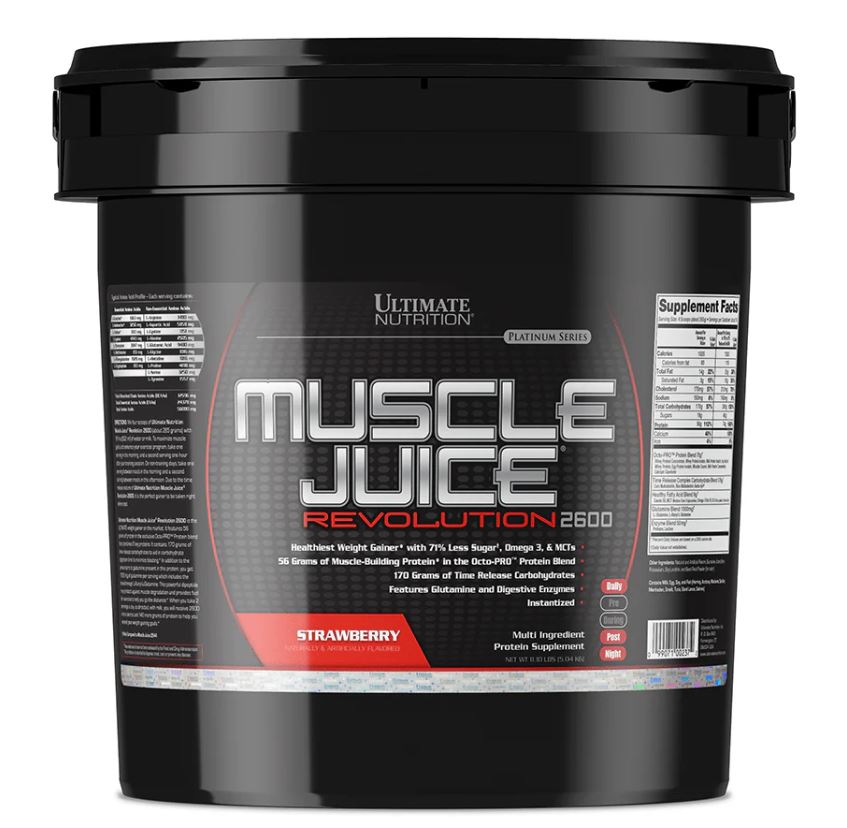 Новый Muscle Juice Revolution 2600 дает новую силу и мощь, причем очень легко! Каждая порция содержит 56 граммов высококачественного белка, быстрые углеводы, EFAs и антикатаболические добавки для сохранения и роста ваших мышц. Этот продукт гарантирует, что вы станете обладателем потрясающей объёмной и жёсткой мускулатуры, увеличите свою силу и энергию на тренировке! Испытайте на себе самый быстрый набор веса с Muscle Juice Revolution 2600! Muscle Juice Revolution 2600 содержит: на 71% менее сахара, чем Muscle Juice 2544; 56 граммов высококачественного протеина, исключительно состоящего из изолята белка; белковую смесь, которая содержит 8 различных протеинов; 170 самых быстрых углеводов для усиления работы дополнительно добавленного в продукт глютамина; пищеварительные энзимы; ненасыщенные жирные кислоты (омега-3, омега-6, омега-9 жирные кислоты).