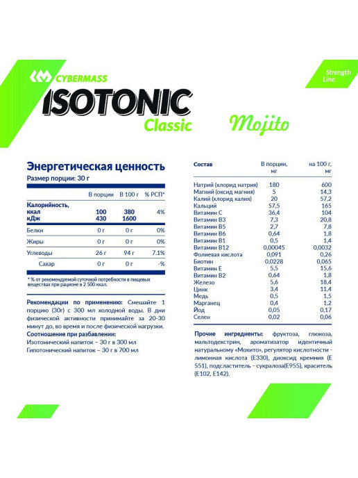 Изотонический напиток Isotonic Classic для поддержания оптимального уровня водно-солевого баланса. Производитель CyberMass применяет в составе витамины, микроэлементы и минеральные вещества с общеукрепляющим эффектом. Помогает организму быстрее восстановиться после интенсивного и продолжительного тренинга. Изотоник востребован опытными профессионалами и любителями.