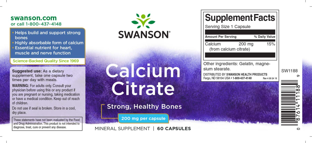 Цитрат кальция является одной из наиболее легко усваиваемых и биодоступных форм, доставляющих дополнительный кальций в организм. Мы предлагаем этот продукт всем, кто ищет чистый цитрат кальция, без дополнительных добавок магния, витамина D или других питательных веществ. Каждая капсула содержит 200 мг активного ингредиента по выгодной цене!