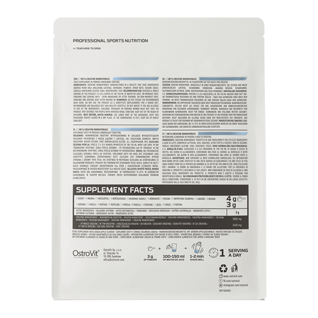 OstroVit Creatine Monohydrate - это однокомпонентная добавка моногидрата креатина высочайшего качества с отличным уровнем микронизации.