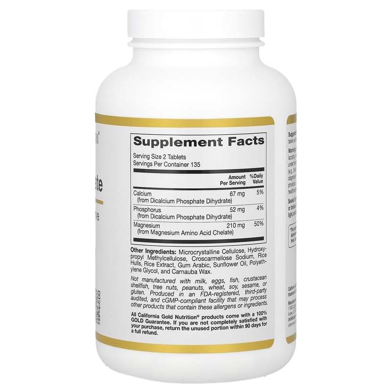 Хелат магния от California Gold Nutrition не содержит глютена, ГМО и сои и подходит для вегетарианцев и веганов.