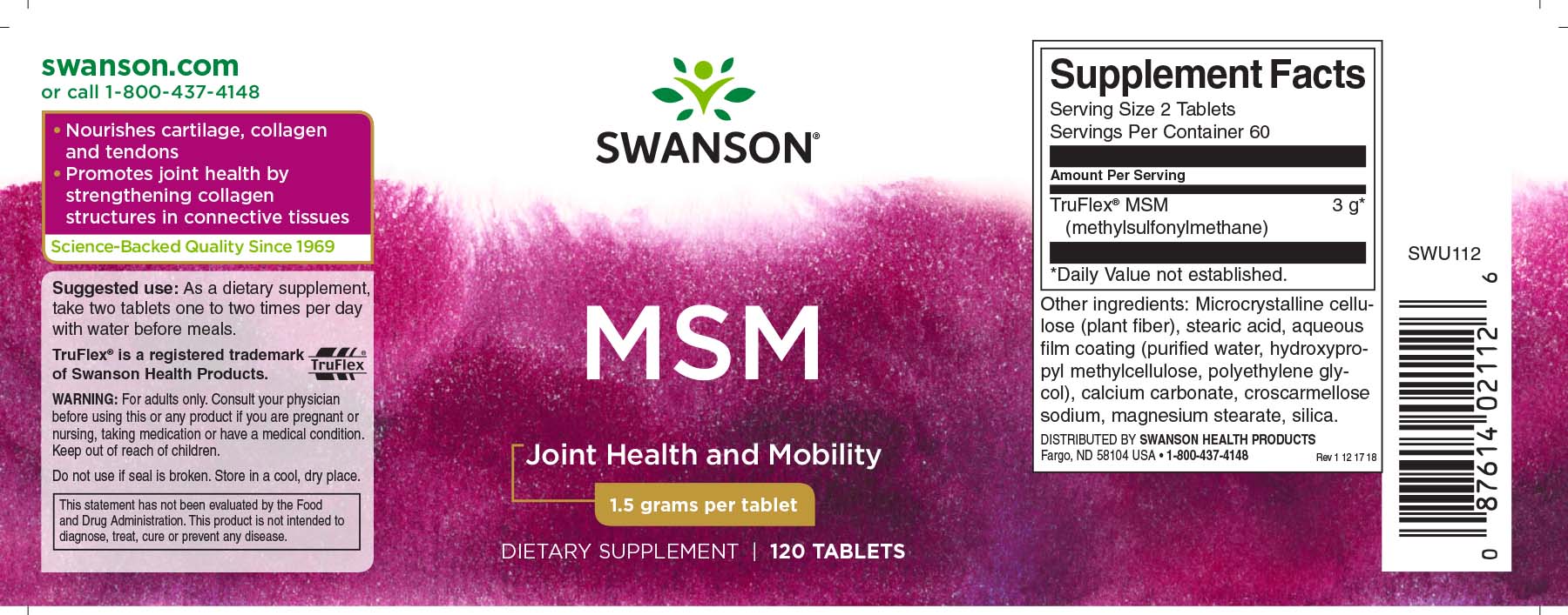 Swanson MSM 1500 mg 120 tablets