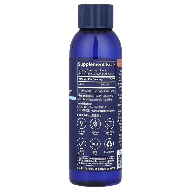 Коллоидное серебро - это пищевая добавка, содержащая более 30 частей на миллион на порцию 99,999% чистого коллоидного серебра. Мы используем запатентованную технологию для обработки этого высококачественного коллоидного серебра для достижения максимальной эффективности.