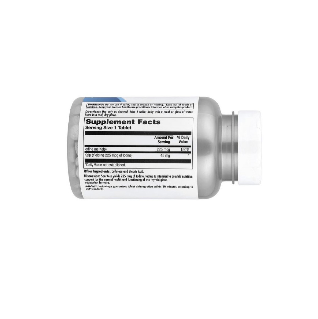 Kelp 225 мкг от KAL – добавка к пище, поставляющая в организм легкоусвояемую органическую форму йода из ламинарии. Эта бурая океаническая водоросль содержит микроэлемент в высокой концентрации. Помимо этого, она насыщена витаминами, аминокислотами, другими минеральными элементами. И все они легко усваиваются в человеческом организме. Предназначение БАДа – профилактика йододефицита и связанных с ним заболеваний щитовидной железы.