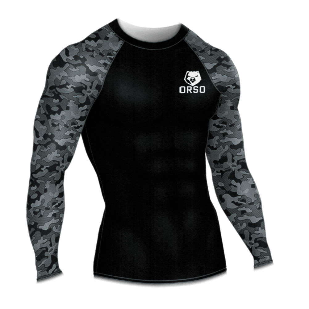 Рашгард из лимитированной коллекции ORSO Champion. На рашгарде нанесен камуфляжный рисунок, что визуально делает его более агрессивным. При изготовлении используется высокотехнологичная компрессионная ткань Biflex Elastic. Материал обеспечивает 4-ёх сторонний обхват мышц, поддерживая их в тонусе, что позволяет улучшить тренировочные показатели. Помимо этого, ткань обладает повышенными влагоотводящими характеристиками, что делает тренировку более комфортной. Композиционная структура ткани позволяет поддерживать оптимальную температуру во время тренировки: тело не остывает и не перегревается.