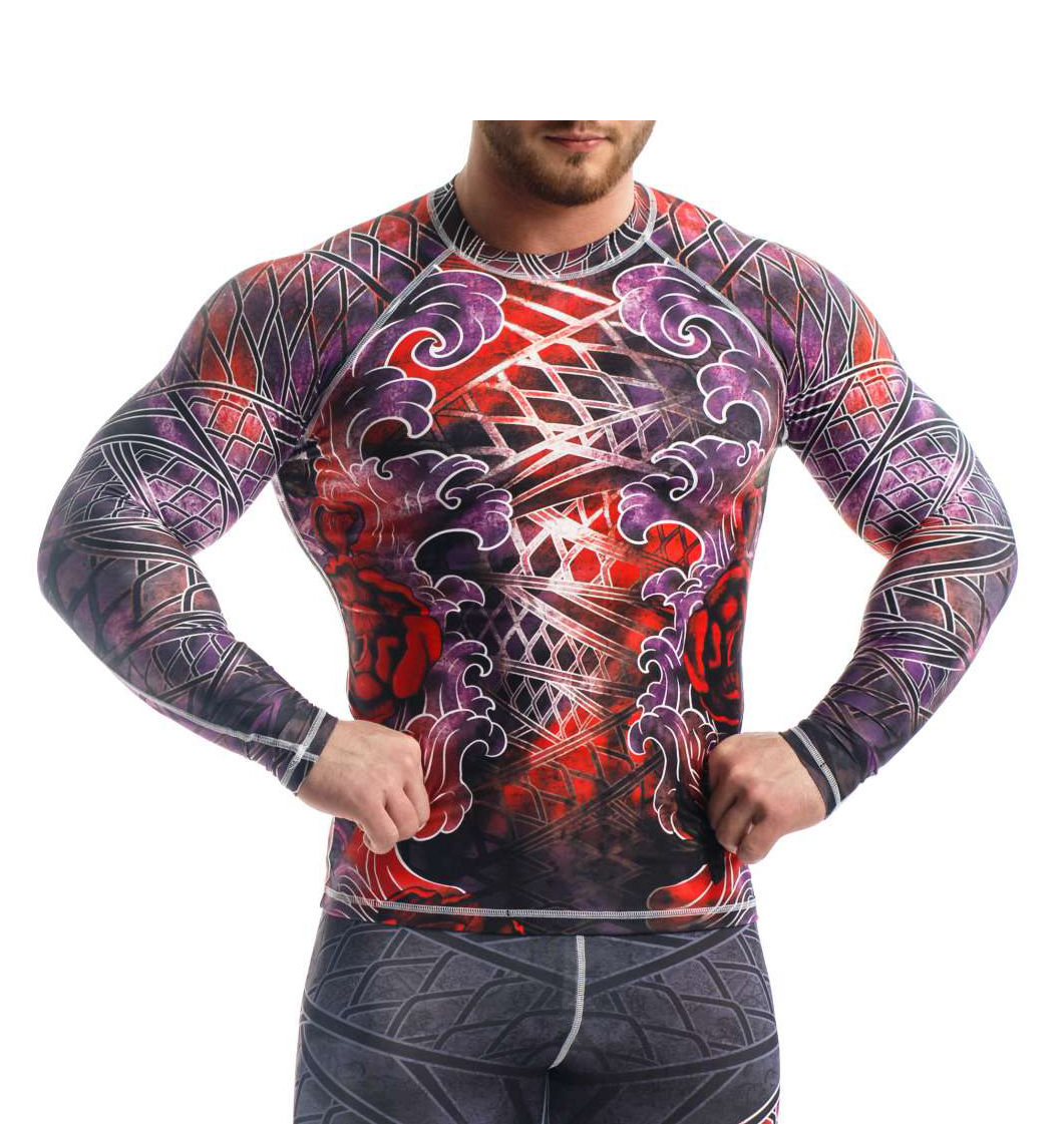 Рашгард с длинным рукавом из коллекции ORSO Yakuza. Концепция рашгарда базируется на одном из главных мотивов иэредзуми (исконной японской татуировки) - легенде о Кинтаро. Ирэдзуми – это не просто яркая картинка, вытатуированная на коже. Это своего рода щит человека, его охранитель Кинтаро - это силач, который борется с огромным карпом Koi. Такие изображения символизируют о храбрости и бесстрашии их владельца, подчеркивают отвагу и физическую силу. Обычно такие изображения наносили тем, кто был особенно хорош в искусстве рукопашного боя. Материал: изготовлено из высокотехнологичной компрессионной ткани. Материал обеспечивает 4-ёх сторонний обхват мышц, поддерживая их в тонусе, что позволяет улучшить тренировочные показатели. Помимо этого, ткань обладает повышенными влагоотводящими характеристиками, что делает тренировку более комфортной. При пошиве используются те же нитки, которые использует Porsche при пошиве сидений в своих автомобилях.
