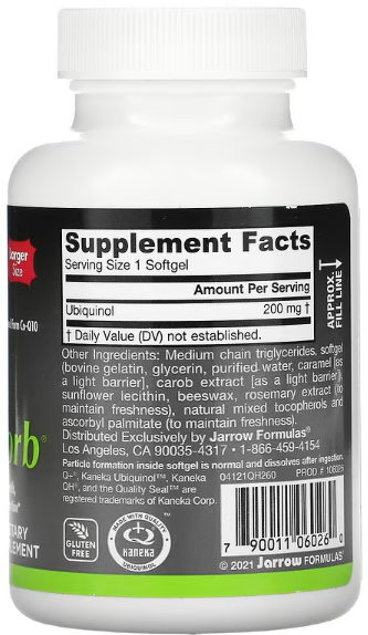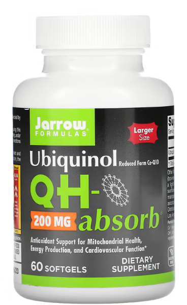 Co-Q10 содержится в богатых энергией тканях, таких как сердце, и поддерживает здоровье митохондрий и выработку энергии, польза для здоровья которых поддерживает сердечно-сосудистую функцию. Убихинол, восстановленная активная антиоксидантная форма Co-Q10, усваивается значительно лучше, чем обычный Co-Q10. Запатентованная формула QH-absorb® от Jarrow Formulas клинически показала, что у людей повышается уровень Co-Q10 на 222% (100 мг в день) и на 777% (300 мг в день) по сравнению с исходным уровнем.