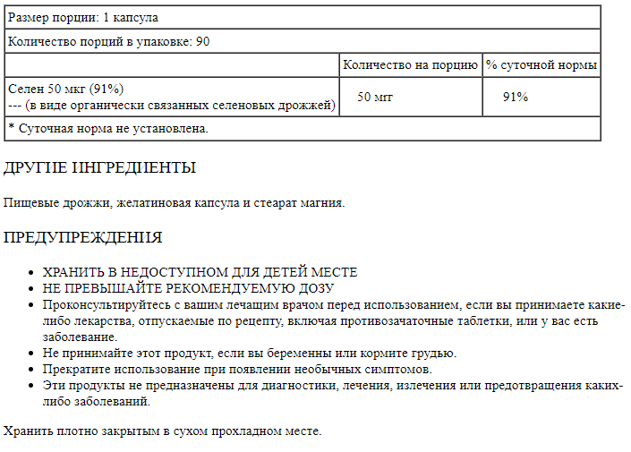 Селен 50 мкг (91%)
