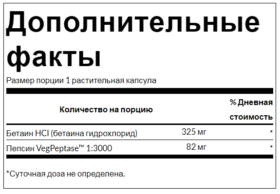 Проблемы с белком? Нам всем нужен белок в нашем рационе, но для некоторых из нас он представляет особую проблему для нашей пищеварительной системы. Swanson Betaine HCl — это специальная формула, которая немного помогает вашему желудку, помогая ему более эффективно расщеплять белки. Он содержит VegPeptase™ — пепсин веганского происхождения — фермент, который помогает переваривать белки, а также гидрохлорид бетаина для поддержания надлежащего уровня pH в желудке. Вместе они составляют отличную пищеварительную команду, помогающую решать проблемы с белком.