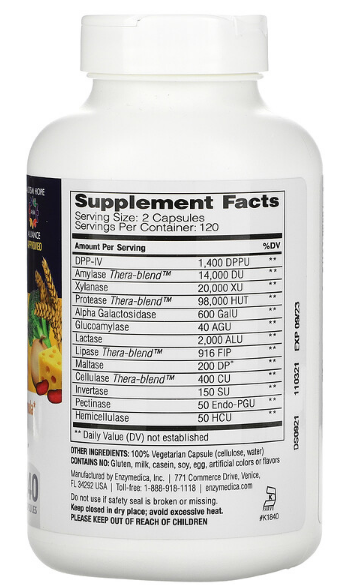 Ферменты Thera-blend™ состоят из нескольких вариантов, которые смешиваются для синергетического действия в широком диапазоне рН человеческого организма.