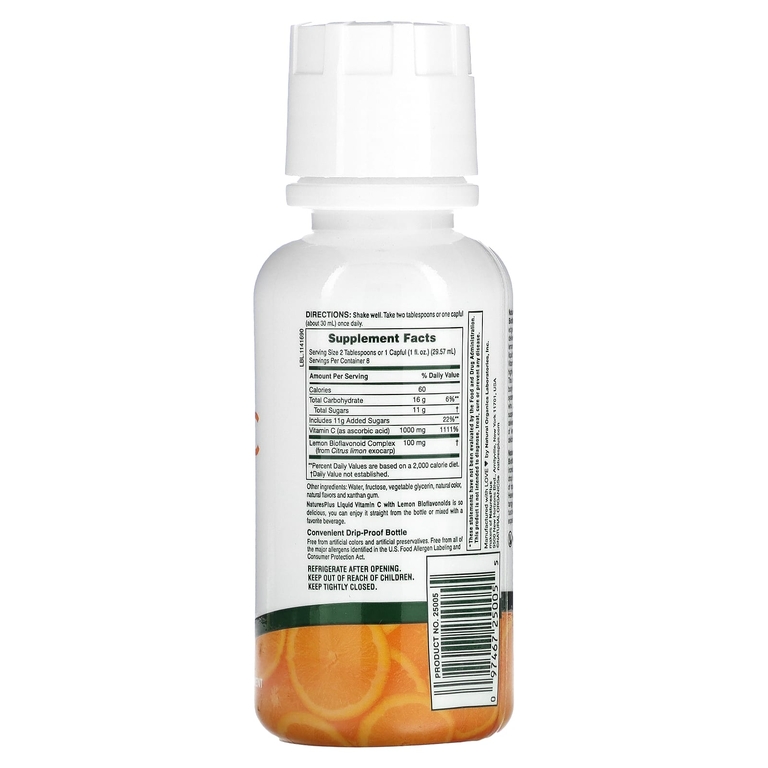 NaturesPlus® Liquid C с биофлавоноидами лимона - это захватывающая передовая добавка с витамином C, которая содержит витамин C и биофлавоноиды лимона превосходного качества в удобной жидкой форме. Витамин C является самым известным и высоко ценимым витамином не просто так: Этот антиоксидант поддерживает многие системы организма, включая систему сосудов и естественную защиту. Для тех, кто предпочитает добавки в виде жидкости или суспензии, NaturesPlus Liquid C содержит 1000 мг витамина C и 100 мг биофлавоноидов лимона всего в двух столовых ложках со вкусом апельсина.