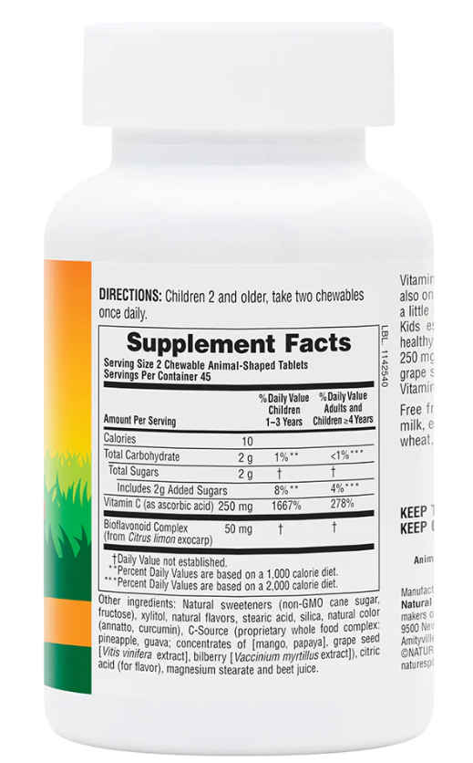 Содержит витамин С в удобном для детей количестве для поддержания здоровья ваших детей