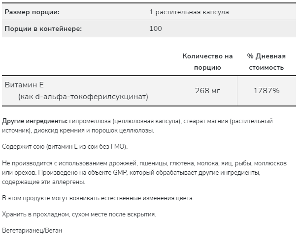 Не производится с использованием дрожжей, пшеницы, глютена, молока, яиц, рыбы, моллюсков или орехов. Произведено на объекте GMP, который обрабатывает другие ингредиенты, содержащие эти аллергены.