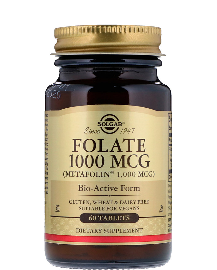 Solgar Folate 1000 mcg (Metafolin 1000 mcg) помогает бороться с тревогой, бессонницей, проблемами с памятью. Также избавляет от проблем с кровеносной системой. Препарат используется в терапии бесплодия, для предупреждения выкидыша и для правильного развития плода.