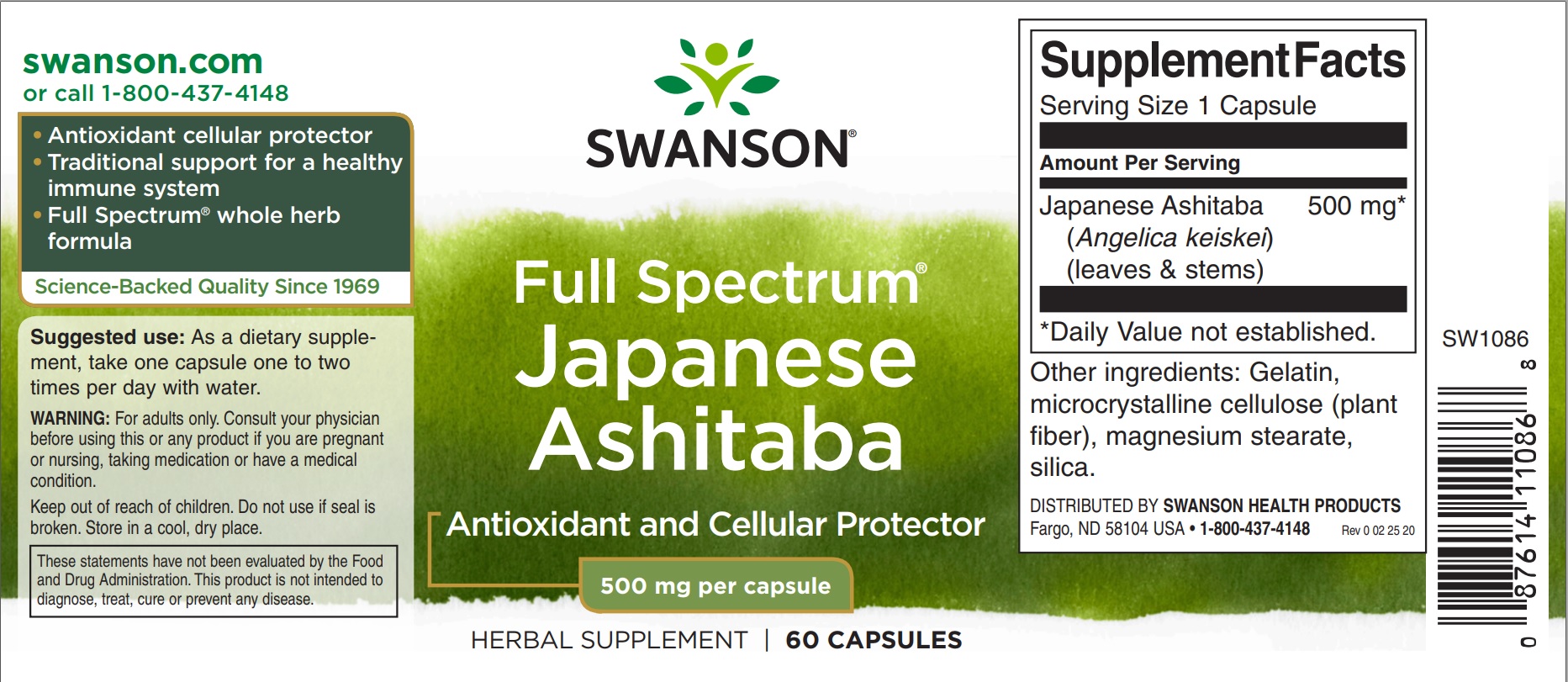 Japanese Ashitaba 500 mg Full Spectrum (Ашитаба японская 500 мг) 60 капсул (Swanson)