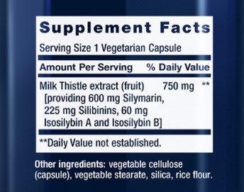 Экстракт расторопши (Silybum marianum) (семенной) [содержание до 80% Силимарина (600 мг) УФ, 30% силибининов (225 мг) и 8% Изоцилибина А и Изоцилибина В (60 мг)]