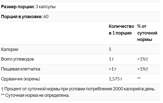 † Процент от суточной нормы при условии потребления 2000 калорий в день.