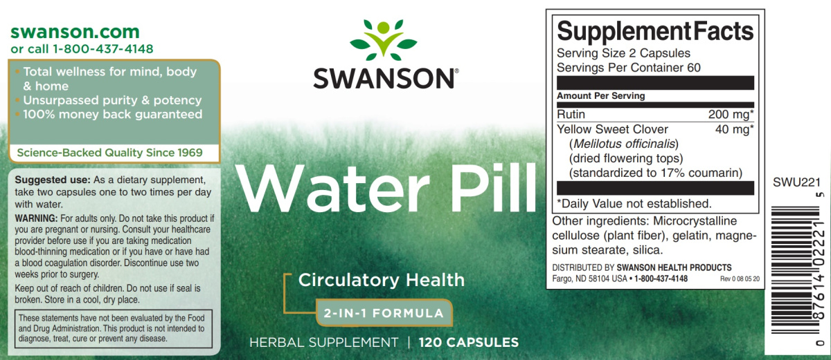 Купить water pill 20 mg 120 капсул (swanson) в интернет-магазине спортивного питания KULTURIST#1